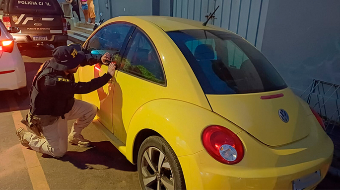 Durante a fiscalização, foi identificado que o veículo ostentava placas de outro automóvel. O condutor informou ter adquirido o carro há cerca de um ano e meio, em um leilão, e admitiu ter alterado a cor e as placas para evitar ser parado em fiscalizações.