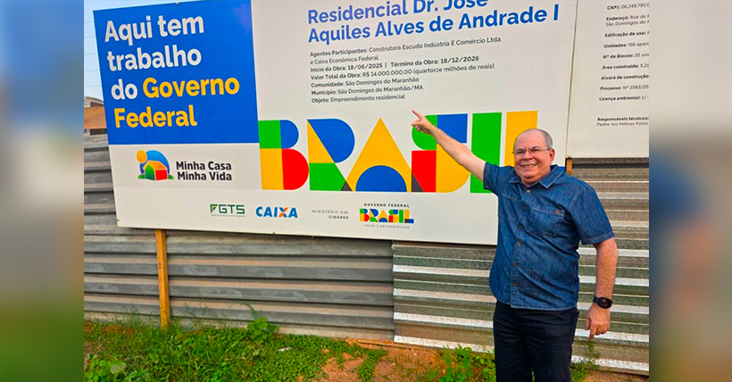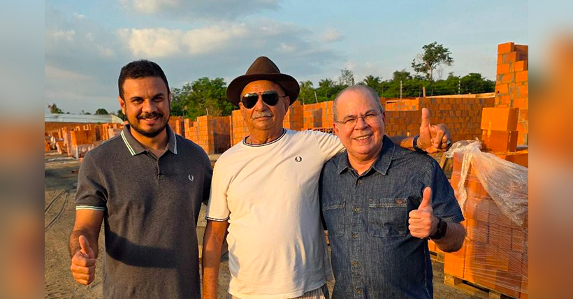 “A obra está evoluindo. Construtora Escudo fazendo essa obra aqui. São 100 casas que estão sendo construídas neste terreno aqui em São Domingos, graças a essa parceria do Hildo Rocha com o Clodomirzinho, Carlos Brandão e o prefeito Tratorzão”, afirmou.