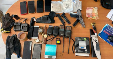 Num total de 14 pessoas foram conduzidas e encaminhadas a delegacia de polícia civil com, um Revólver cal. 38, numeração 1860354, um revólver calibre 38, numeração 1557160, um Revólver calibre 32 com numeração suprimida, um revólver calibre 32 de numeração BJ52947, uma espingarda calibre 28, 10 munições de calibre 38, sendo 8 intactas e 2 deflagradas, 12 Munições de calibre 32, todas intactas, 111 “Petecas” de uma substância análoga a crack, 01 Celular LG cinza, 01 Celular Samsung preto, 01 celular Motorola dourado, 01 celular Samsung lilás, 01 celular Samsung rosa, 01 celular Samsung Azul, 01 Celular Samsung branco, 01 Moto Titan 160 Honda de cor vermelha, placa PSR5494, com CRLV, 01 Moto CG 125 Honda, vermelha com número de motor e chassi suprimidos, 03 RG’s, 01 carteira de trabalho, R$ 298,30 (duzentos e noventa e oito reais e trinta centavos), 01 cartão Bradesco em nome de Diego, 01 porta cédula de Diego.