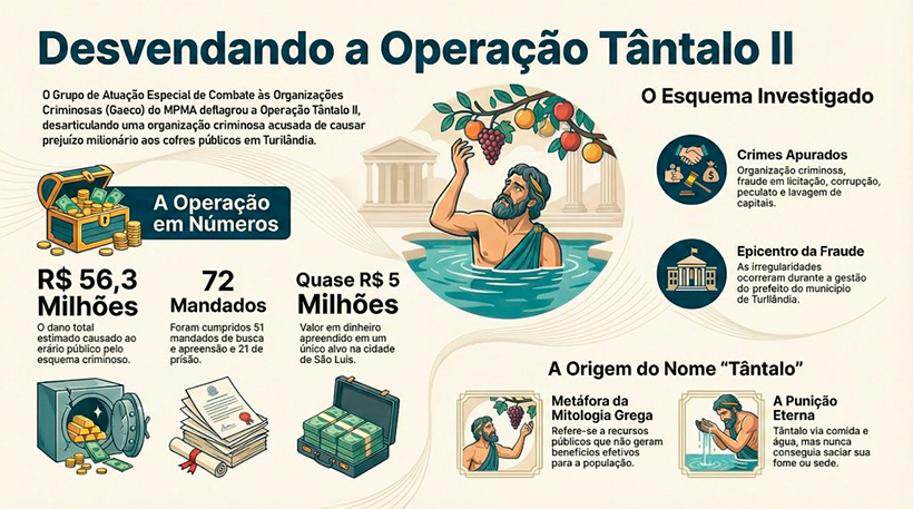 As ordens foram expedidas pela 3ª Câmara Criminal do Tribunal de Justiça do Estado do Maranhão, por decisão da desembargadora Maria da Graça Peres Soares Amorim. A ação é um desdobramento da Operação Tântalo, deflagrada em fevereiro deste ano.