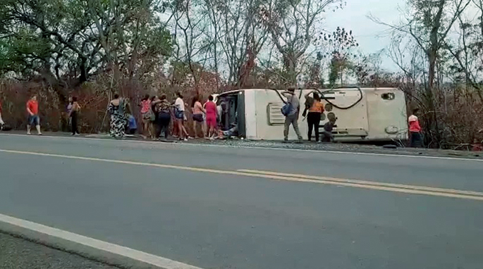 Uma pessoa morreu e outras 30 ficaram feridas após um ônibus sair da pista e tombar, na manhã desta segunda-feira (22), na BR-316, no povoado Descanso, em Caxias. Entre os feridos estão crianças, gestante e idosos.