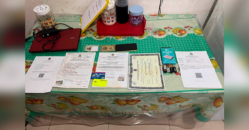 As equipes apreenderam documentos falsificados, aparelhos celulares, impressoras de alta resolução, notebooks e diversos materiais que, segundo a polícia, eram utilizados na produção dos documentos fraudulentos.